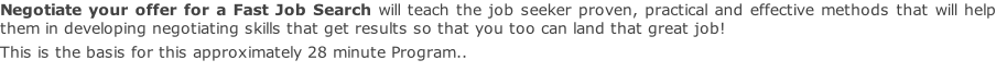 Negotiate your Offer for a Fast Job Search $139.95 Limited Promotion (Reg. $395.00)